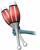 The Grip Place the first club in your hand, then lay the second club on top of that and hold it with the tips of your thumb, middle and forefinger. The knob of the second club should be closer to your elbow than the first club like the green clubs. If you do it the other way like the red clubs there's a tendency to catch the knob when you start. Some people like to start with the clubs held like the red ones but I recommend the green. Try both and see what happens.